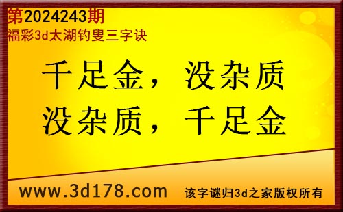 3d第2024243期太湖图库解字谜:千足金,没杂质,没杂质,千足金