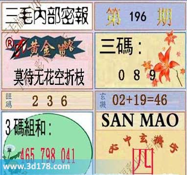 3d第2014196期三毛内部密报图: