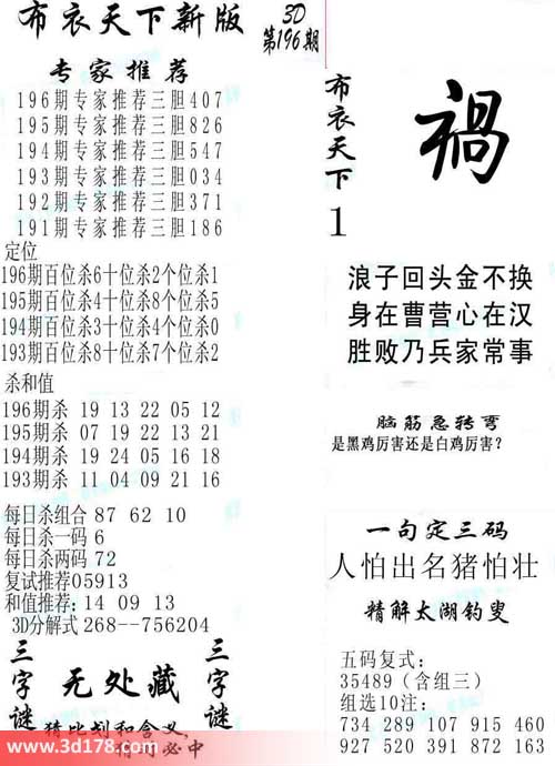 3d第2014196期布衣天下新版: