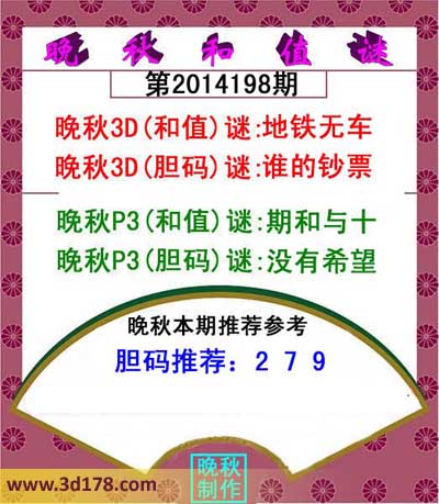 晚秋P3(和值)谜:期和与十