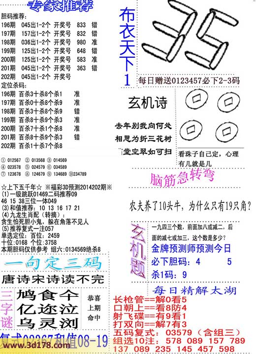 3d好心人布衣图三字谜: