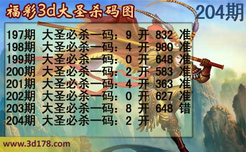 3d第2014204期大圣杀码图: