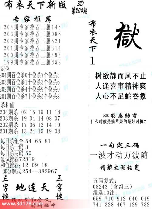 3d第2014204期布衣天下新版: