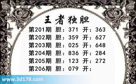 第201期 胆:371 开:363第202期 胆:359 开:627第203期 胆:025 开:648第204期 胆:836 开:284第205期 胆:123 开:272第206期 胆:079 开: 王者独胆图库由3d之家3D图库频道原创,仅供彩民参考,温馨提供。