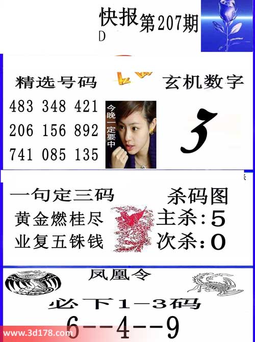 3d第2014207凤凰快报图: 3d第2014207凤凰快报推荐: 玄机数字:3精选号码:483 348 421 206 156 892 741 085 135