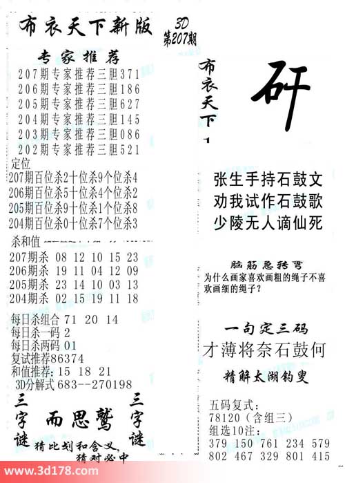3d第2014207期布衣天下新版: