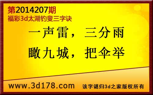 3d第2014207期太湖图库解字谜: