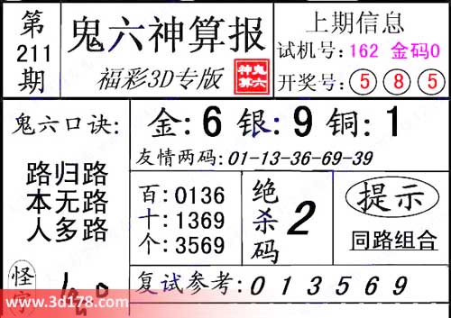 3d第2014211期鬼六神算报: