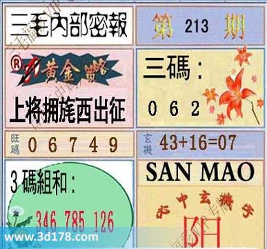 3d第2014213期三毛内部密报图:
