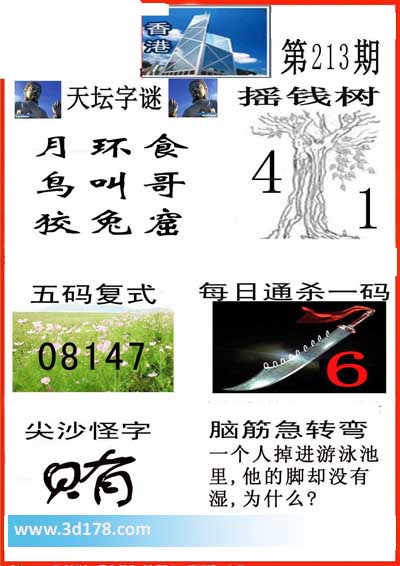 3d第2014213期香港彩报图推荐: 天坛字谜: