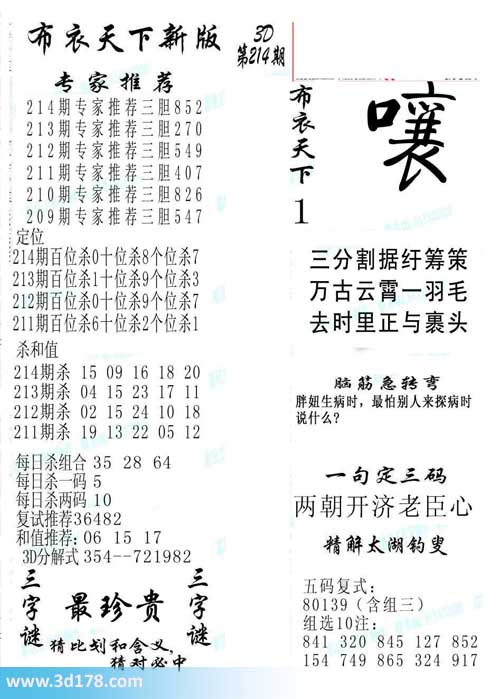 该布衣图库由福彩3D之家3D图库频道原创,仅供彩民参考,温馨提供。