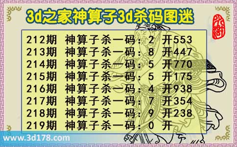 212期 神算子杀一码:2 开553213期 神算子杀一码:8 开447214期 神算子杀一码:5 开770215期 神算子杀一码:5 开175216期 神算子杀一码:4 开938217期 神算子杀一码:7 开354218期 神算子杀一码:9 开238219期 神算子杀一码:0 开 该神算子杀码图由3D之家3D图库频道原创,仅供彩民参考,温馨提供。