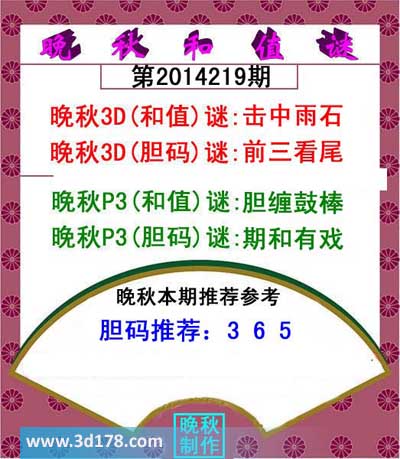 晚秋P3(胆码)谜:期和有戏胆码推荐:365