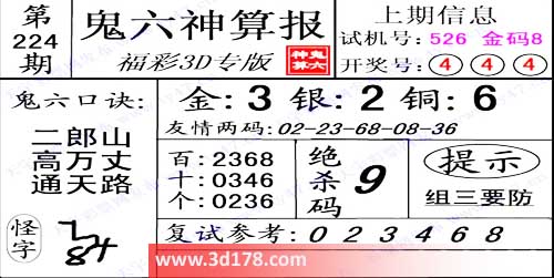 3d第2014224期鬼六神算报详解:鬼六口诀:二郎山高万丈通天路