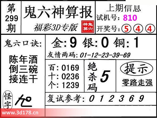3d第25299期鬼六神算报为您推荐鬼六口诀: