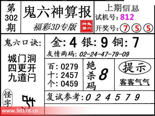 3d第25302期鬼六神算报为您推荐鬼六口诀: