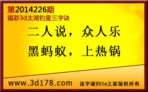 3d第2014226期太湖图库解字谜:
