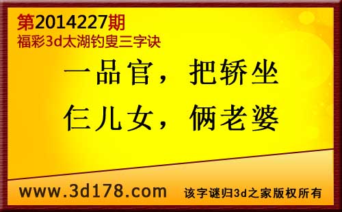 3d第2014227期太湖图库解字谜: