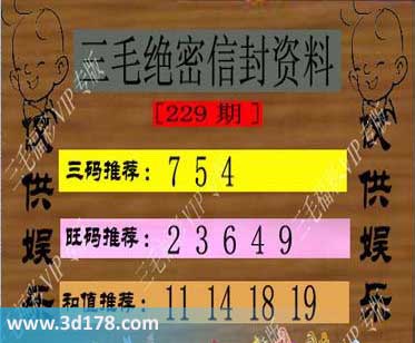3d第2014229三毛绝密信封资料图详解: 三码推荐:754旺码推荐:23649和值推荐:11 14 18 19 三毛图库由3D之家3D图库频道原创,仅供彩民参考,温馨提供。