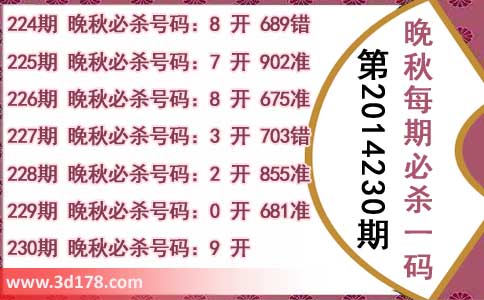 224期 晚秋必杀号码:8 开 689错225期 晚秋必杀号码:7 开 902准226期 晚秋必杀号码:8 开 675准227期 晚秋必杀号码:3 开 703错228期 晚秋必杀号码:2 开 855准229期 晚秋必杀号码:0 开 681准230期 晚秋必杀号码:9 开