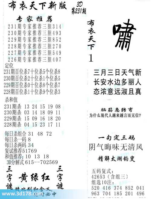 该布衣图库由福彩3D之家3D图库频道原创,仅供彩民参考,温馨提供。