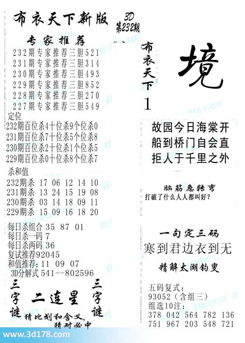 3d第2014232期布衣天下新版: