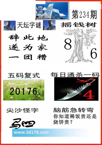 3d第2014234期香港彩报图推荐: 天坛字谜: