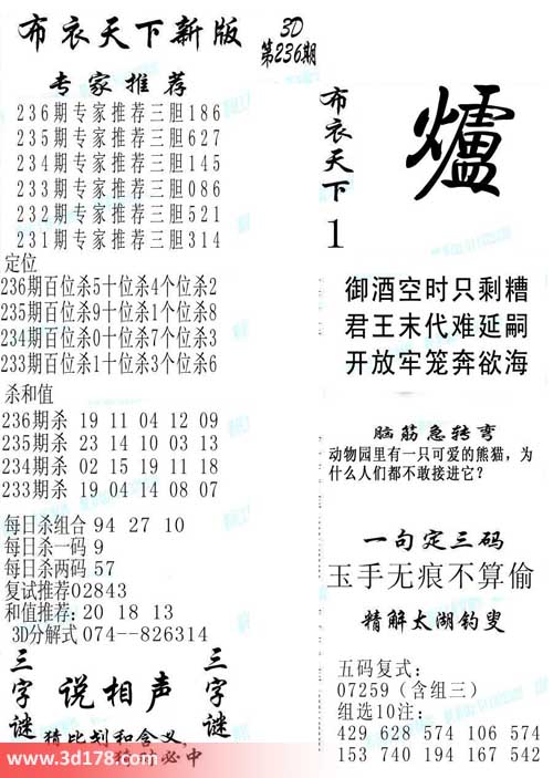 3d第2014236期布衣天下新版: