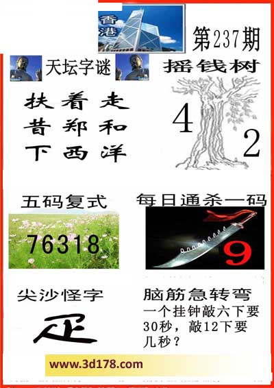 3d第2014237期香港彩报图推荐: 天坛字谜: