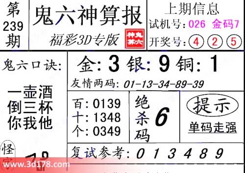 三码推荐:金胆:3,银胆:9,铜胆:1