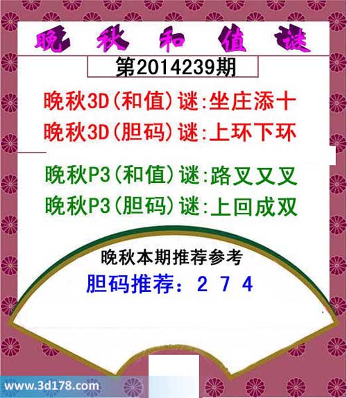 晚秋3D(和值)谜:坐庄添十晚秋3D(胆码)谜:上环下环晚秋P3(和值)谜:路叉又叉晚秋P3(胆码)谜:上回成双