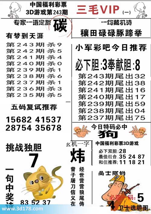 3d第2014243期三毛专家一语定胆图详解:
