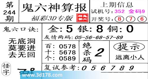 3d第2014244期鬼六神算报: