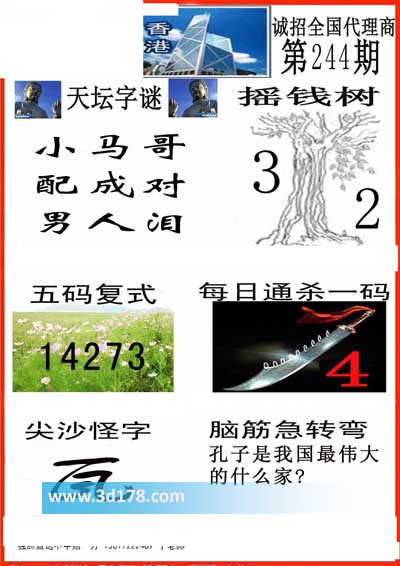 3d第2014244期香港彩报图推荐: 天坛字谜: