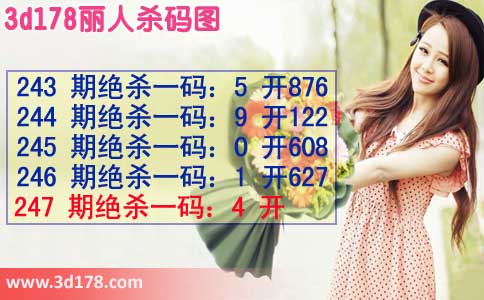3d第2014247期丽人杀码图详解: 243 期绝杀一码:5 开876244 期绝杀一码:9 开122245 期绝杀一码:0 开608246 期绝杀一码:1 开627247 期绝杀一码:4 开