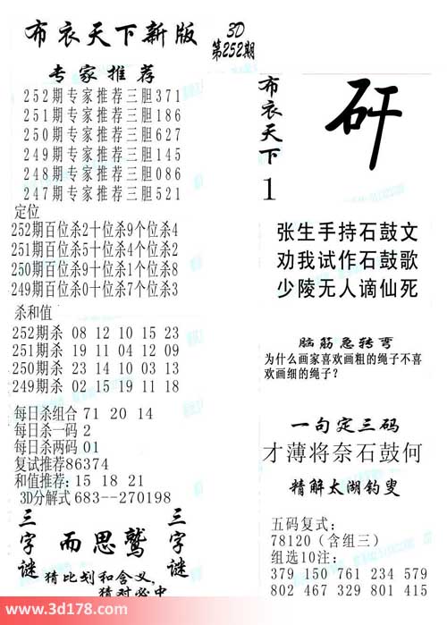 该布衣图库由福彩3D之家3D图库频道原创,仅供彩民参考,温馨提供。