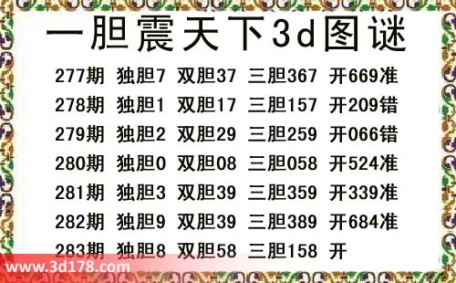 一胆震天下三胆图库由3D之家3D图库频道原创,仅供彩民参考,温馨提供。