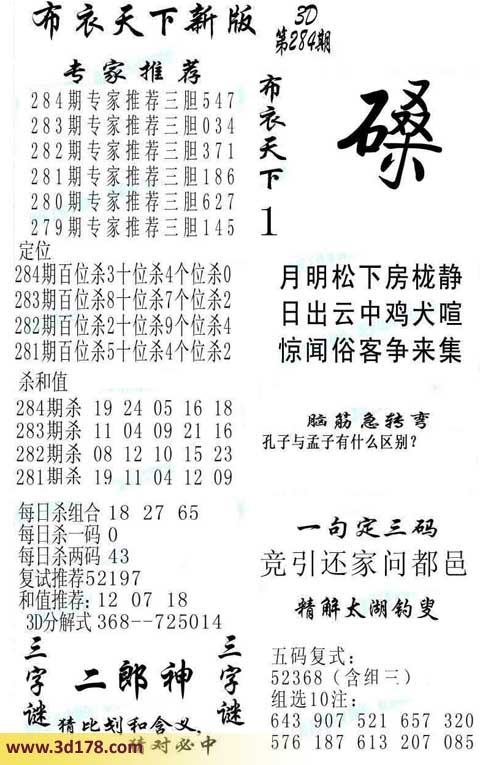 3d第2014284期布衣天下新版: