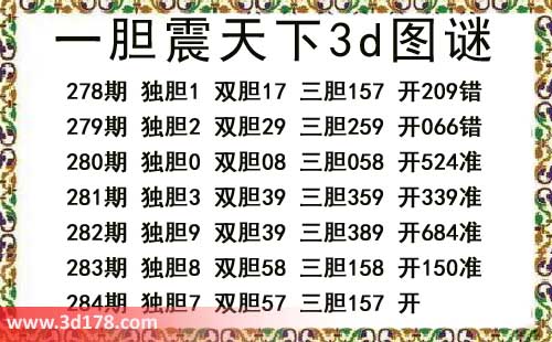 一胆震天下三胆图库由3D之家3D图库频道原创,仅供彩民参考,温馨提供。