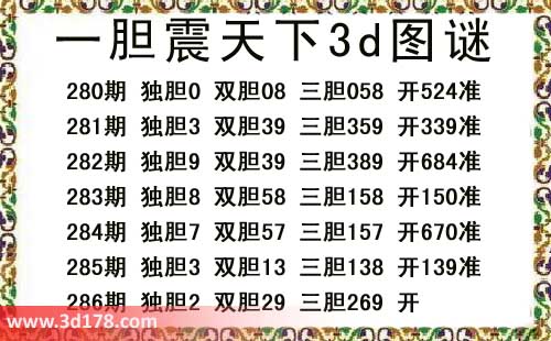 一胆震天下三胆图库由3D之家3D图库频道原创,仅供彩民参考,温馨提供。