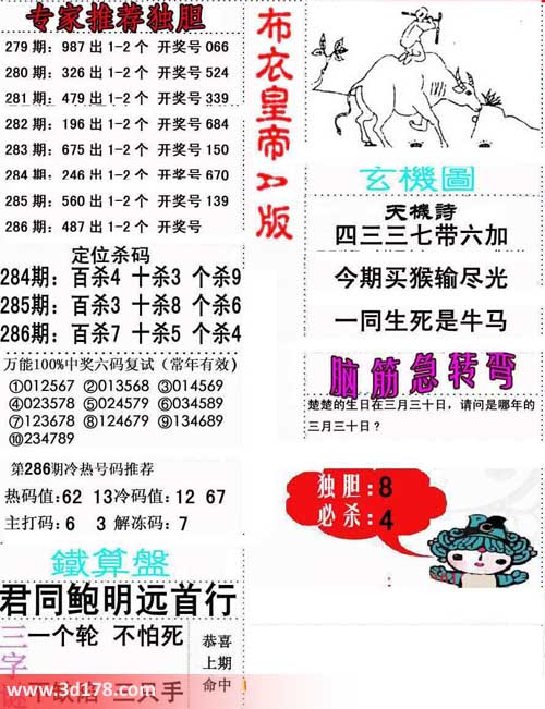 3d第2014286期布衣天下皇帝详解: