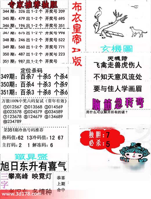 3d第2014351期布衣天下皇帝详解: