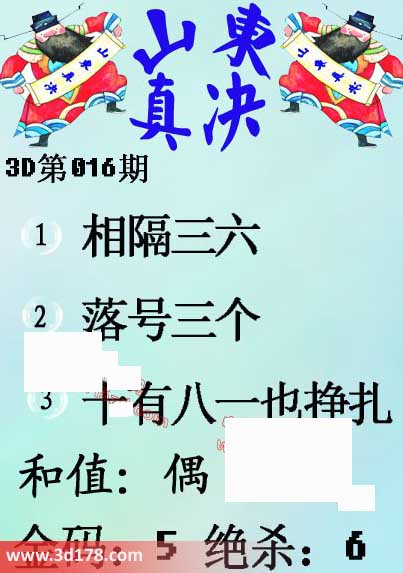 3d第2015016期山东真诀图: