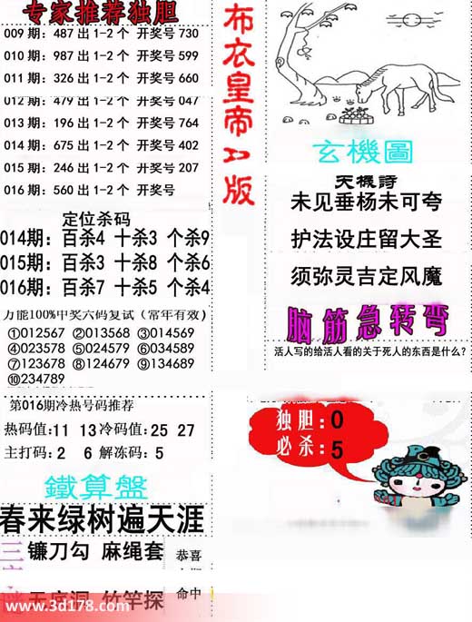 3d第2015016期布衣天下皇帝详解: