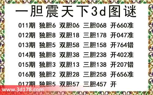 一胆震天下三胆图库由3D之家3D图库频道原创,仅供彩民参考,温馨提供。