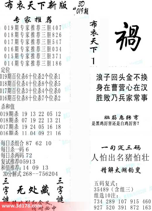 该布衣图库由福彩3D之家3D图库频道原创,仅供彩民参考,温馨提供。