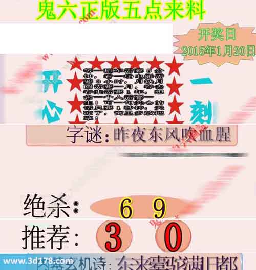 3d第2015020期鬼六五点来料: