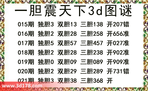 一胆震天下三胆图库由3D之家3D图库频道原创,仅供彩民参考,温馨提供。