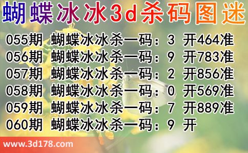 3d第2015060蝴蝶冰冰杀码图:3d第2015060蝴蝶冰冰杀码图:055期 蝴蝶冰冰杀一码:3 开464准056期 蝴蝶冰冰杀一码:9 开783准057期 蝴蝶冰冰杀一码:2 开856准058期 蝴蝶冰冰杀一码:0 开569准059期 蝴蝶冰冰杀一码:7 开889准060期 蝴蝶冰冰杀一码:9 开该蝴蝶冰冰杀码图由3D之家3D图库频道原创,仅供彩民参考,温馨提供。
