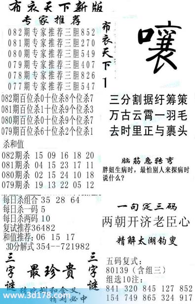 3d第2015082期布衣天下新版: